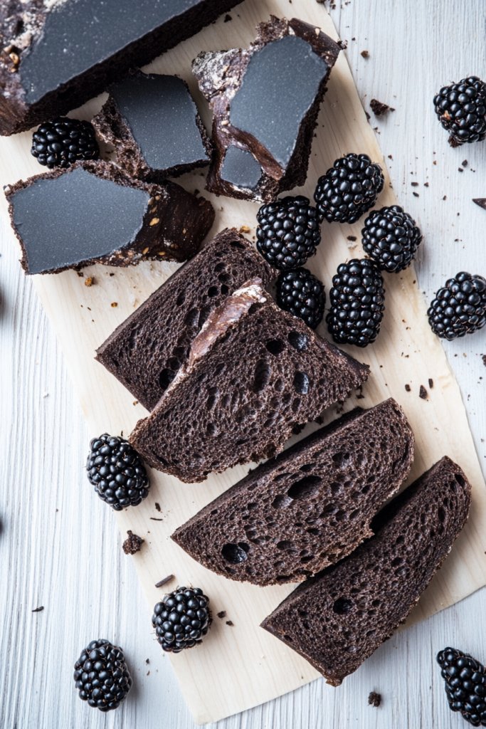 6. Scandinavian-Inspired Monochrome Board with Blackberries, Dark Rye, and Charcoal Accents