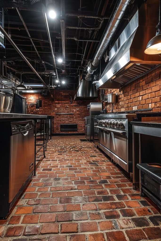 Looking to add an industrial edge to your kitchen? Combining brick floors with metal accents and fixtures instantly creates a bold, contemporary vibe. It’s about mixing raw textures with sleek elements for a striking, modern look. If you love the idea of a space that’s both rugged and refined, this style might be your new favorite.