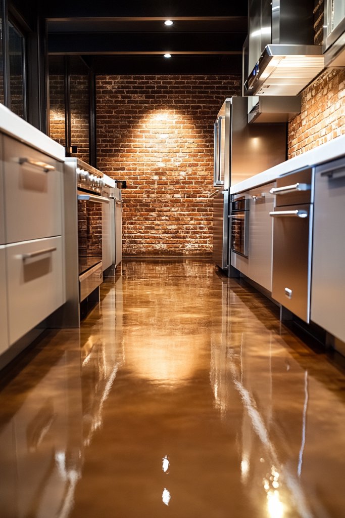 Polished exposed brick floors elevate your kitchen into a space that’s both bold and timeless. They offer a unique texture and shine that’s hard to replicate with other materials. This look commands attention and adds a layer of sophistication to your home. Ready to embrace a floor that’s full of character and class? With careful planning, you’ll have a stunning foundation for years to come.