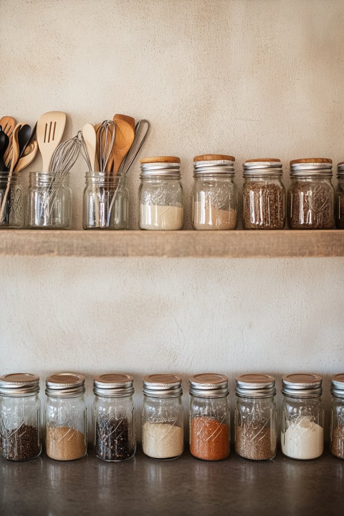 11. Mason Jar Storage Solutions for Utensils and Spices
