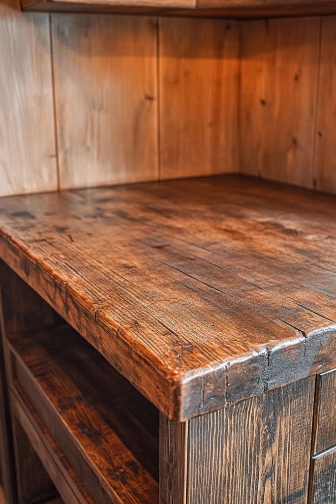 5. Distressed Wood Countertops for a Worn-In Look