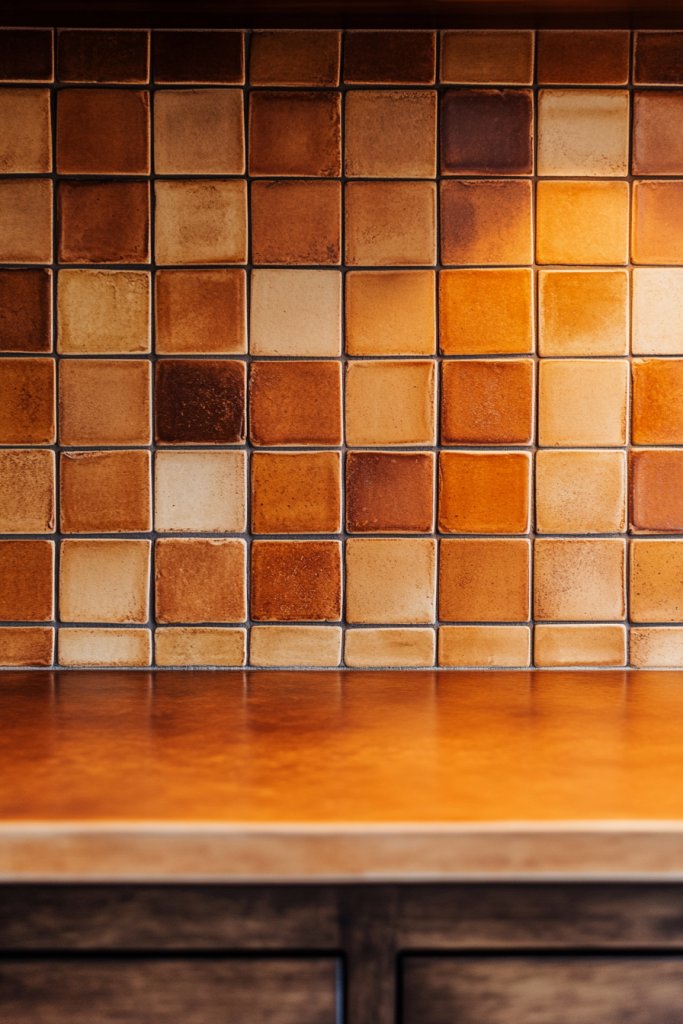 6. Warm-Toned Ceramic or Terracotta Backsplash