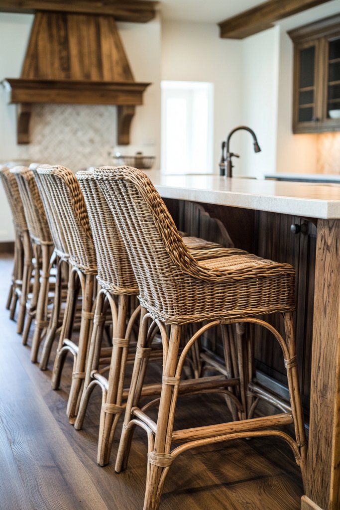 Seeking a natural, textured touch for your kitchen seating? Metal or plastic stools can feel cold and impersonal. Woven rattan or wicker bar stools introduce warmth and organic texture that complements rustic decor perfectly. They make your space feel relaxed and inviting.