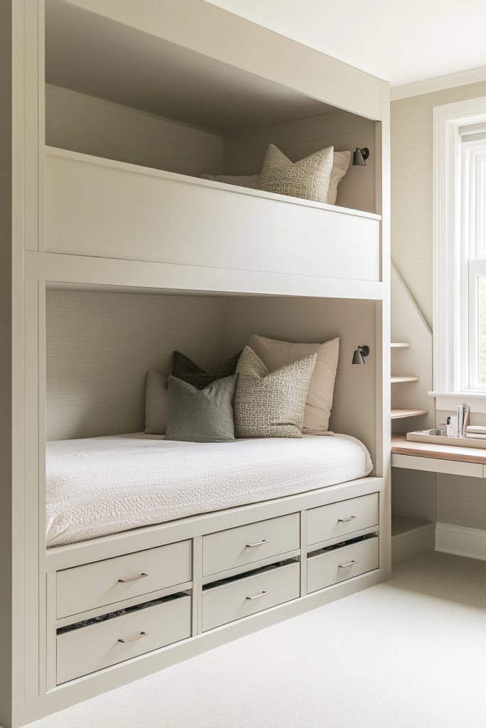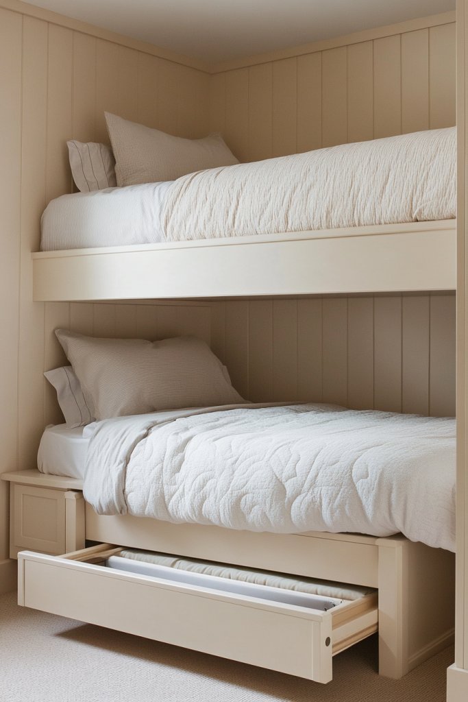 1. Space-Saving Built-In Bunk Beds with Under-Storage Drawers