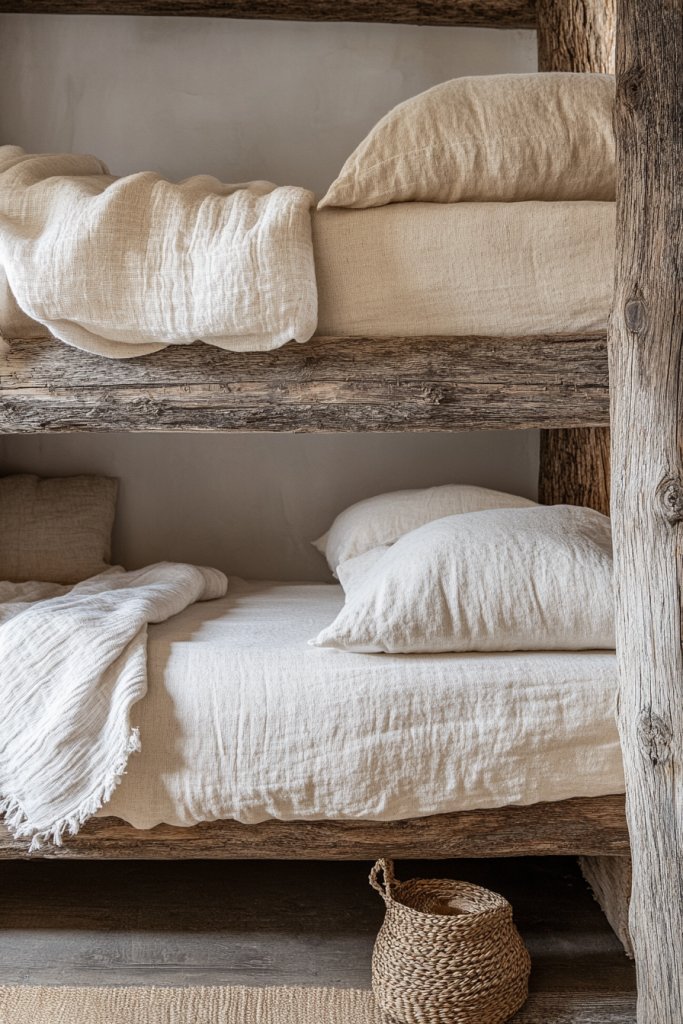 18. Eco-Friendly Bunk with Reclaimed Wood and Natural Fabrics