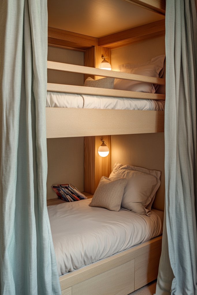 Do your kids crave their own space but you’re limited by room size? Creating private, cozy retreats within a shared room can be a game-changer. Niche bunks with privacy curtains provide a sense of personal sanctuary without sacrificing floor space. Who wouldn’t want a little hideaway?