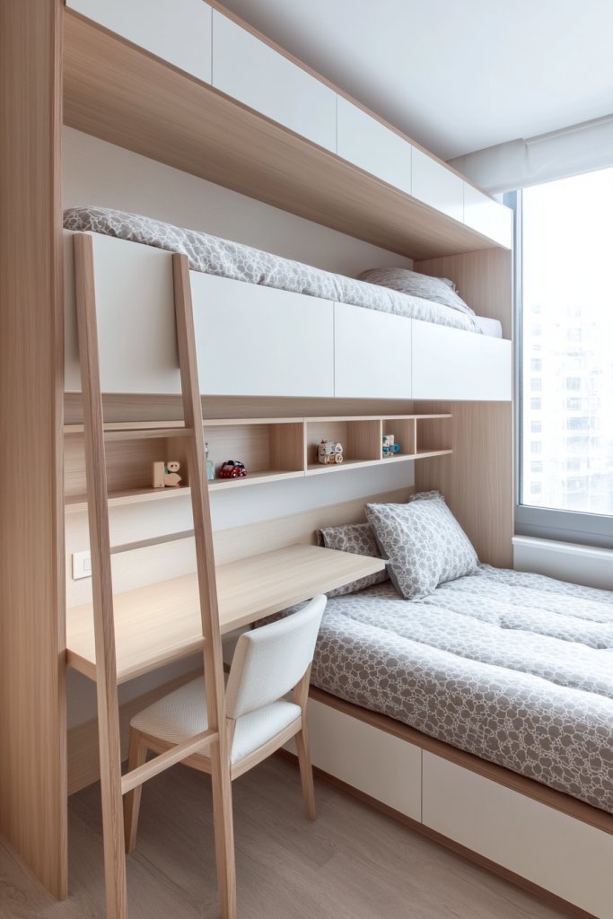 11. Scandinavian-Style Bunk with Light Wood and Soft Textures