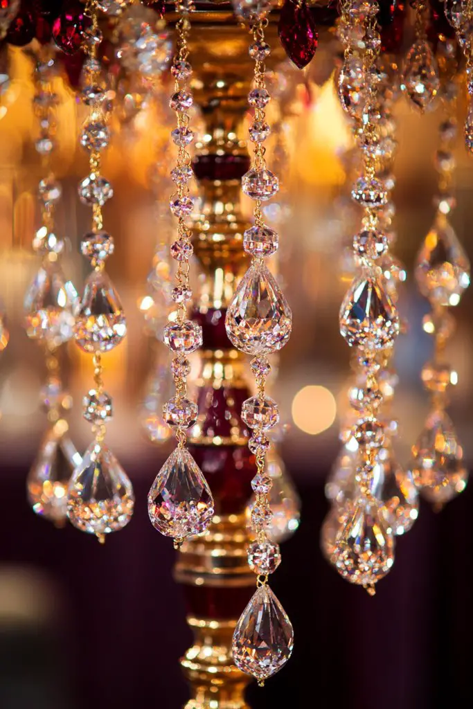 14. Gold and Burgundy Crystal Centerpiece with Hanging Gems