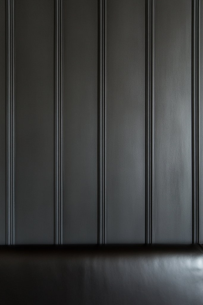 Visualize textured wood or MDF panels painted in a rich charcoal hue, installed in a vertical or horizontal pattern. The panels catch the light differently depending on the angle, creating shadows and highlights that add dimension. When paired with minimalist furniture and bedding, the paneling makes the room look intentionally designed and layered. It transforms flat walls into a central design element that commands attention.