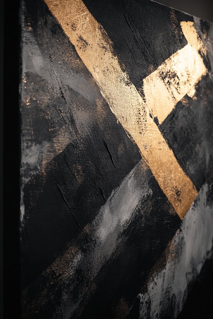 Gather supplies: charcoal or dark acrylic paints, metallic paints, brushes, and canvases. Sketch your design lightly with pencil before painting. Layer the charcoal background with textured brushstrokes or sponges. Add metallic accents using brushes, sponges, or even metallic tape for geometric precision. Seal the artwork with a matte clear coat for durability. Hang with sturdy hooks, ensuring it’s centered and at eye level.