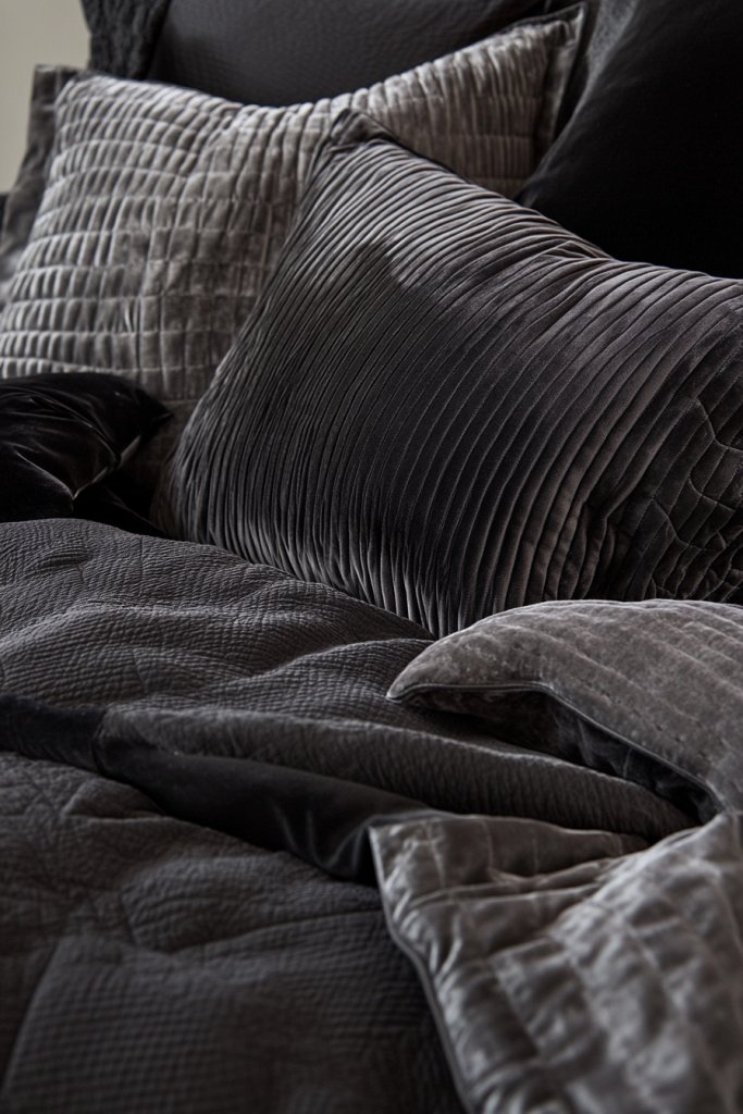 Picture a bed adorned with pillows in soft velvets, chunky knits, embroidered fabrics, and faux furs—all in shades of charcoal and dark gray. The variety in textures catches the light differently and invites touch, making your space feel plush and curated. The mix of smooth, fluffy, and textured surfaces creates depth, preventing the overall look from feeling flat. The pillows breathe personality into your bed, making it the ultimate relaxation zone.