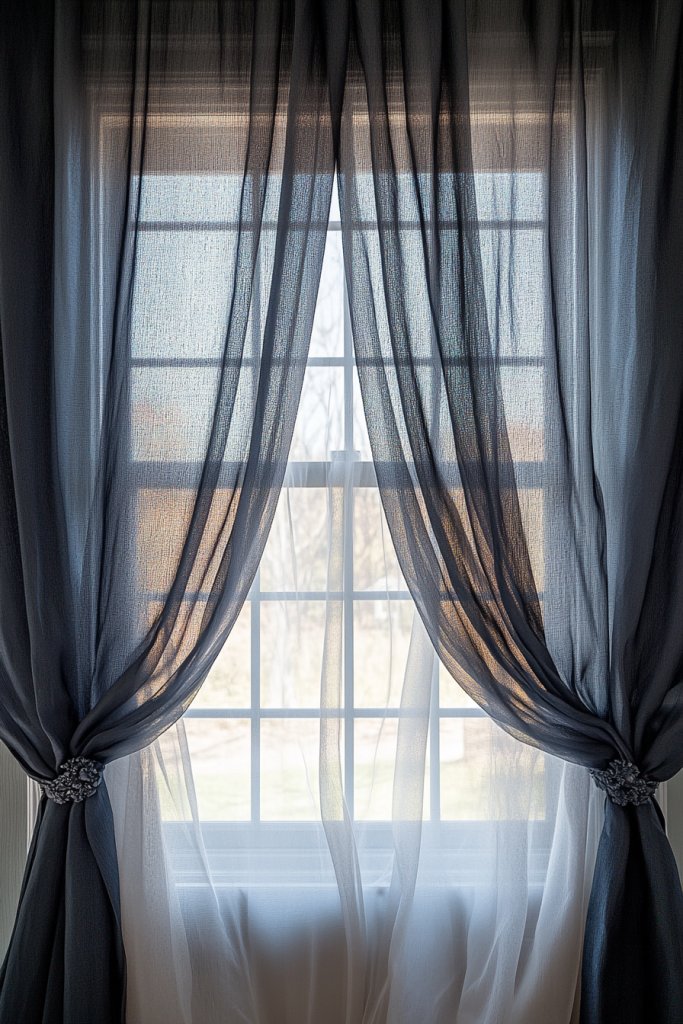 Deep charcoal curtains with sheer layers help you master mood control and light management effortlessly. They elevate your decor with their plush, rich textures and elegant layering. Ready to make your windows a statement? This simple upgrade creates instant luxury and privacy, elevating your entire space.