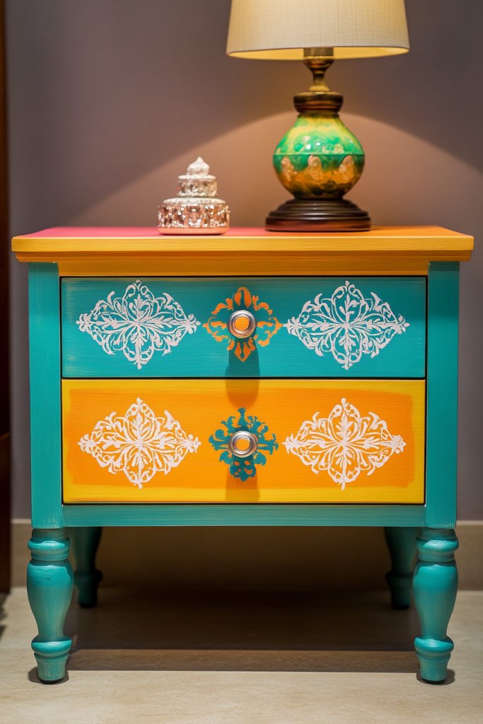 Picture a dresser or nightstand with its drawer fronts transformed into a canvas. Bright, contrasting colors or intricate stencils create a layered, textured effect. The patterns may include florals, chevrons, or geometric shapes—whatever suits your style. The result is a dynamic piece that draws attention and adds visual depth. Paired with minimalist hardware, it becomes a modern or vintage statement depending on your design choices.