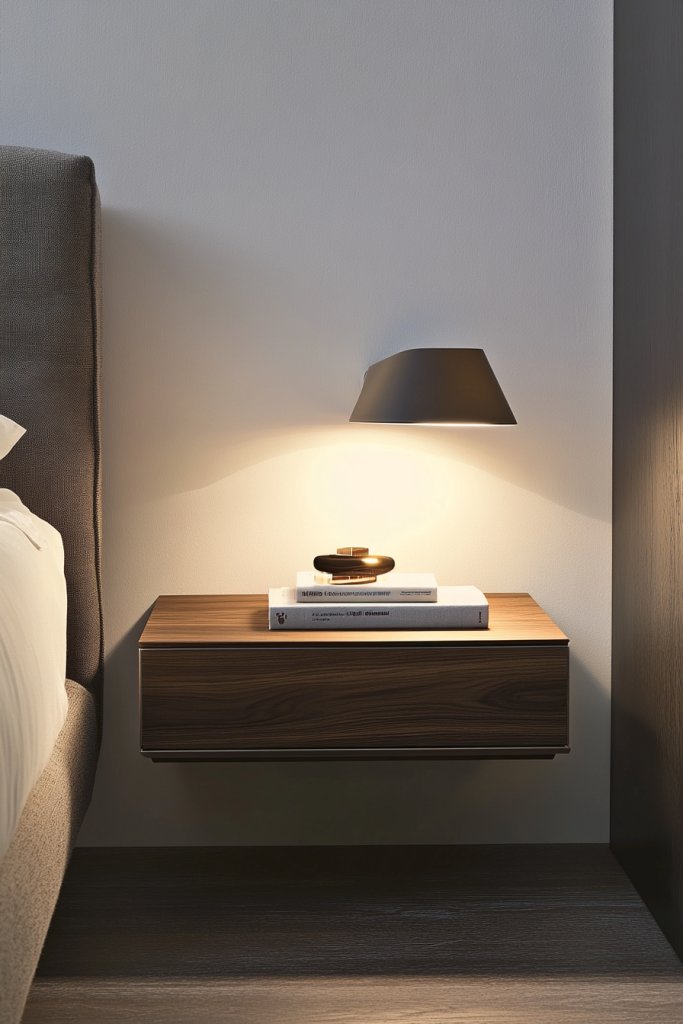 Add a coat of paint in your favorite color or a natural stain for a warm look. Incorporate decorative elements like a small sculpture or a textured wall panel underneath. Use different materials—metal brackets or a glass shelf—for a contemporary touch. You can even install LED strip lighting underneath for a subtle glow. Personal touches will make your floating nightstand stand out.