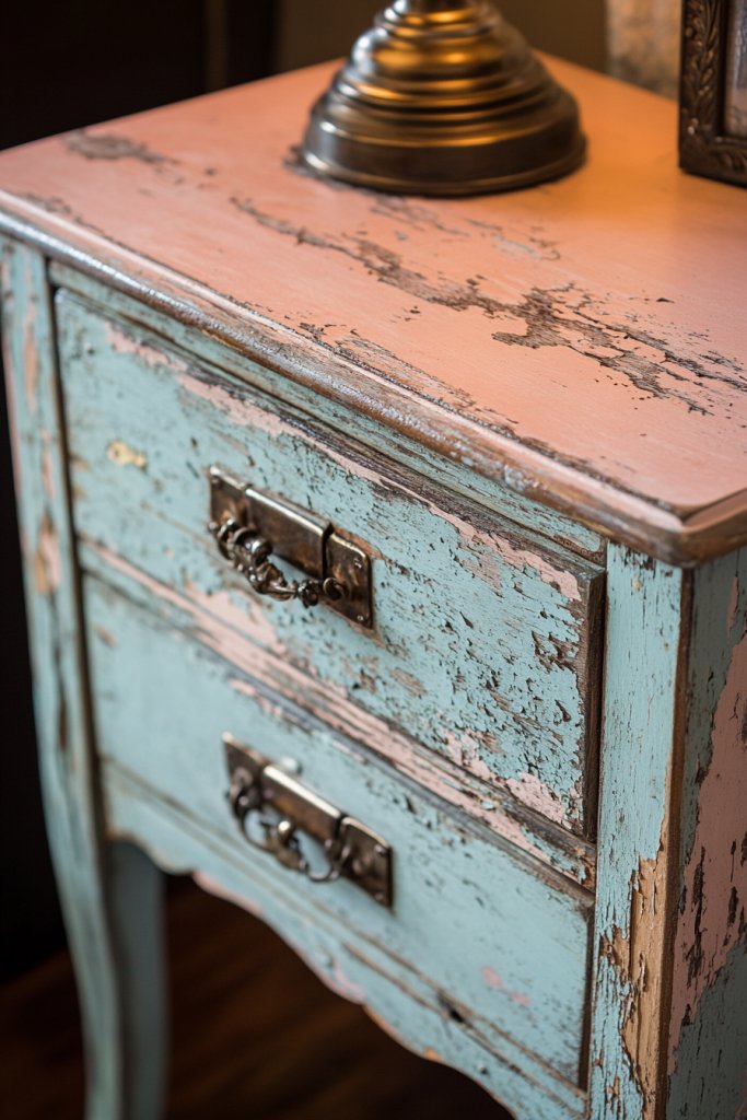 Choose colors that match your decor, from creamy whites to dusty blues or pale grays. You can distress the paint in specific areas for a more rustic look or keep it smooth for a cleaner aesthetic. This technique works on different furniture types, from nightstands to dressers or even small shelves. Seasonal updates can be achieved by changing the paint color or adding decorative decals. It’s a versatile style that suits various tastes.