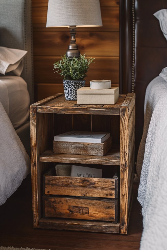 2. Upcycled Crate as a Stylish Bedside Cubby