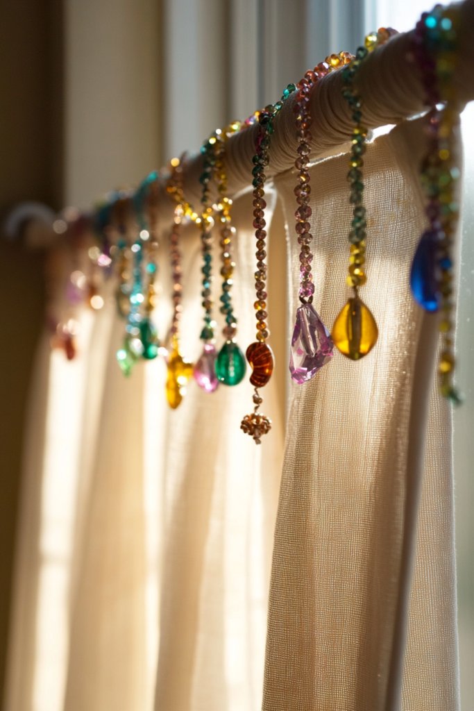 17. Hang Decorative Beads or String Charms Along Curtain Tops