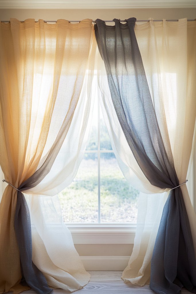 Mix and match different textures and colors—maybe a delicate lace behind a bold patterned curtain or a velvet layer for winter coziness. Adjust the number of layers based on your room’s vibe or season. For a casual look, use mismatched fabrics; for a polished feel, choose complementary hues and patterns.