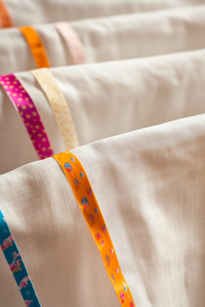 Create custom patterns or combine tapes for layered effects. Use metallic or glitter tape for a glam touch, or choose matte finishes for a more subdued look. Add small embellishments like fabric paint or stickers to further personalize the edges. This technique works great on curtains, pillowcases, or even picture frames for a cohesive style.