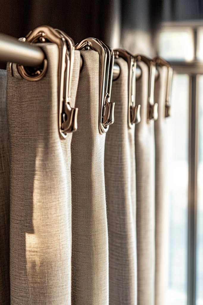 Plain curtains can look dull, especially if you want a modern, layered vibe. Using curtain clips and rings gives you the flexibility to create a playful, movable look that’s both functional and stylish. It’s a simple upgrade that transforms your window treatment from basic to eye-catching.