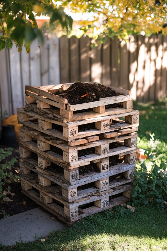 14. Build a Simple Compost Bin from Recycled Pallets or Bins