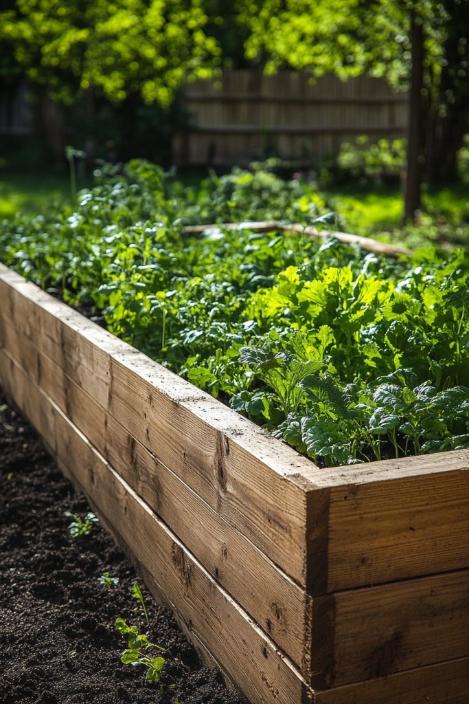 Imagine a cozy corner of your yard with a neat rectangular patch of soil, lined with simple wooden or wire fencing. Rows of sprouting herbs like basil, cilantro, and parsley mingle with small vegetable plants. The scent of fresh herbs fills the air as bees and butterflies flit nearby. It’s a mini paradise that’s easy to maintain and full of life.