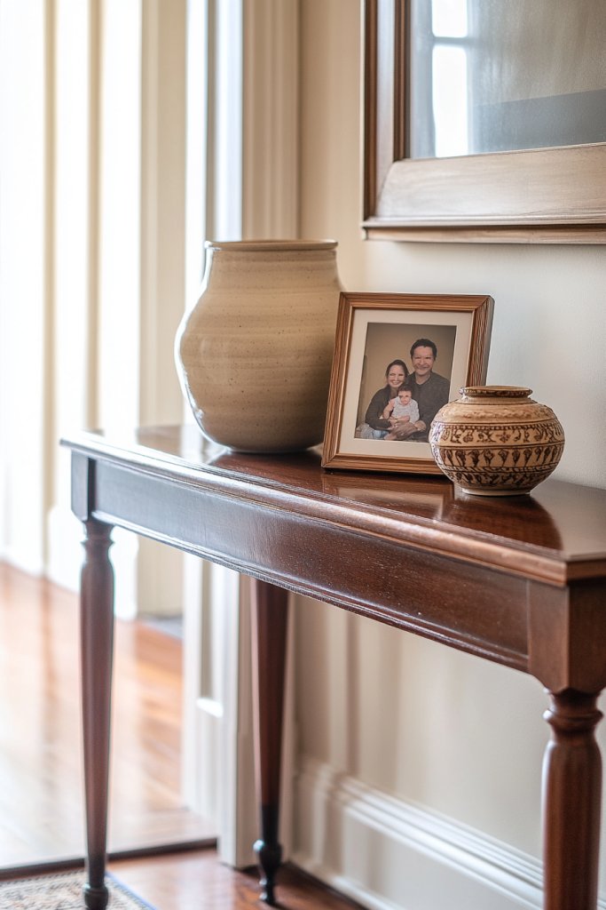 Want your entryway to feel warm and personal instead of impersonal and sterile? Adding family photos or handcrafted items can infuse character and soul into the space. It’s a simple way to showcase your story and create a welcoming vibe.