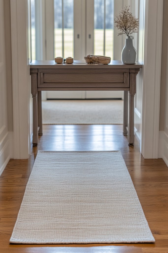 If you want a cozy, stylish welcome mat that feels good underfoot, this idea is a winner. Imagine a plush, textured runner in a neutral hue leading from the door to your console.