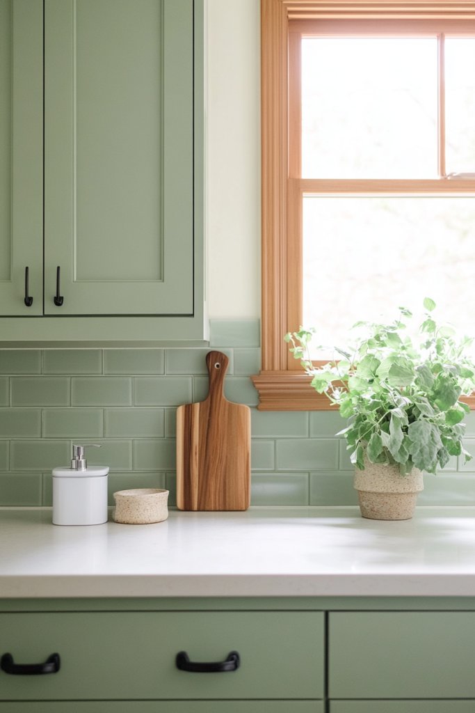 13. Soft Sage Green for Calming Kitchen Backsplashes or Walls