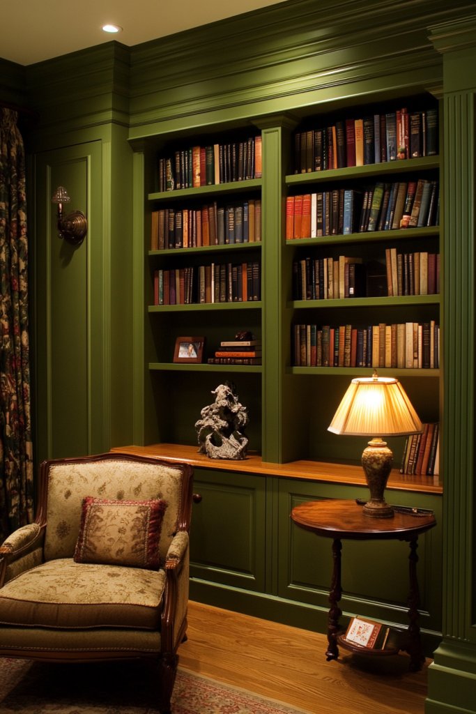 8. Deep Olive Green for Stylish Home Libraries
