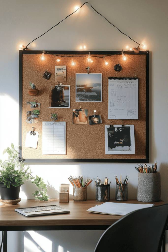 A corkboard or memo grid is a great way to add a personalized and functional element to your room. These boards allow you to pin important notes, reminders, photos, and inspirational quotes in a way that keeps your space visually interesting. A corkboard offers a more traditional, warm-toned look, while a sleek metal memo grid lends a modern and industrial touch. Whether you place it above your desk or near your bedside, having a dedicated space for pinning ideas can keep you motivated and organized. Plus, switching out photos and mementos over time allows you to refresh your decor easily.