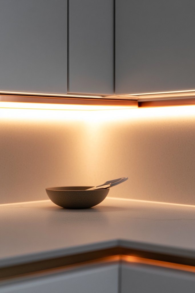 18. Copper-Enhanced Under-Cabinet Lighting for Warmth and Function