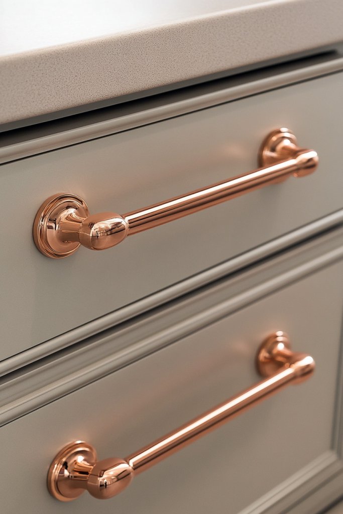 4. Copper-Colored Drawer Pulls and Cabinet Handles