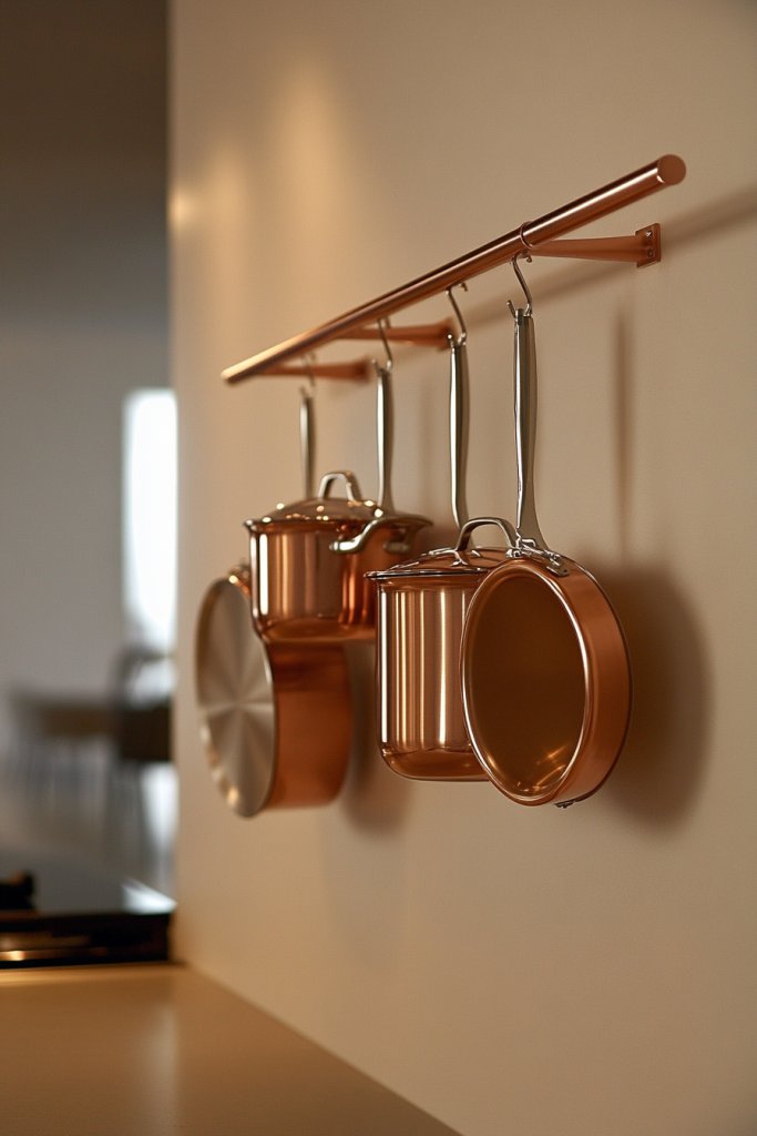 8. Copper Wall-Mounted Pot Racks for Space-Saving Storage