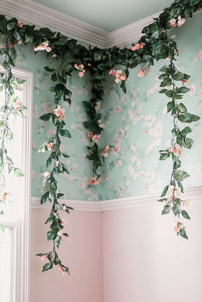 8. Faux Botanical Garlands Draped Along the Walls or Ceiling