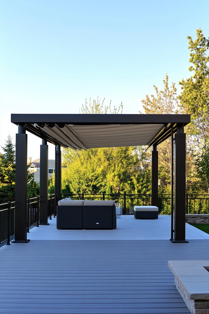 1. Modern Pergola with Retractable Canopy for Versatile Shade