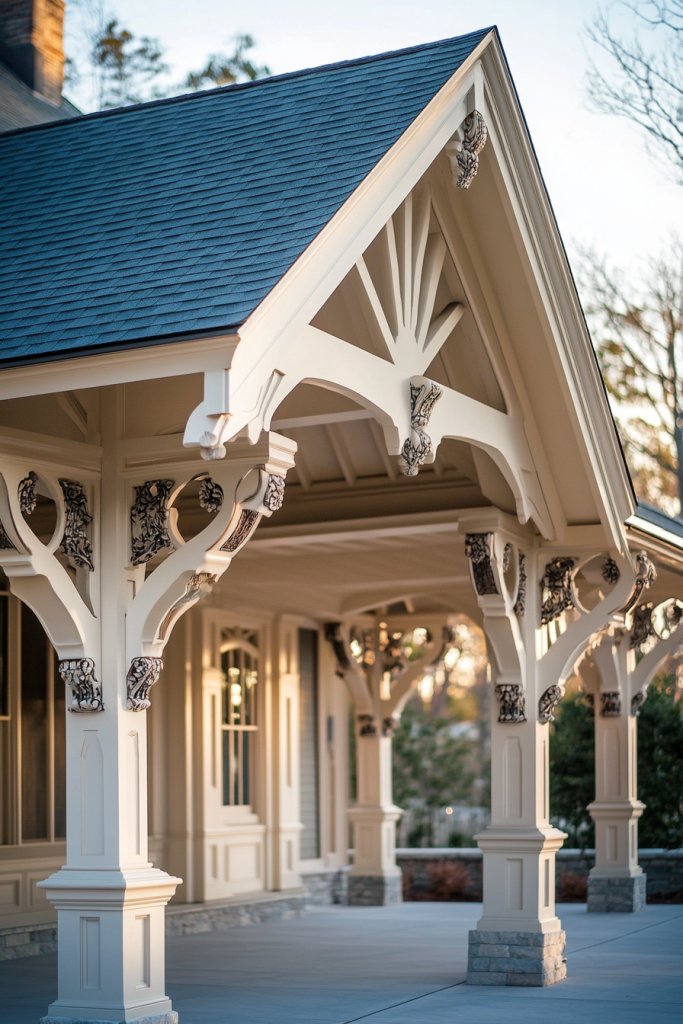 14. Classic Gable Roof with Decorative Brackets for a Traditional Look