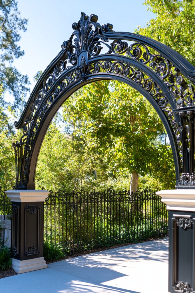 21. Curved Arch Cover with Decorative Metalwork for Artistic Flair