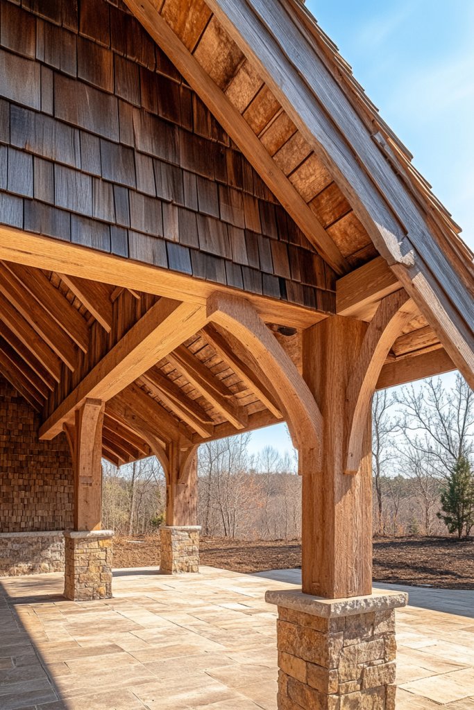 3. Rustic Shingle Roof with Exposed Wooden Beams