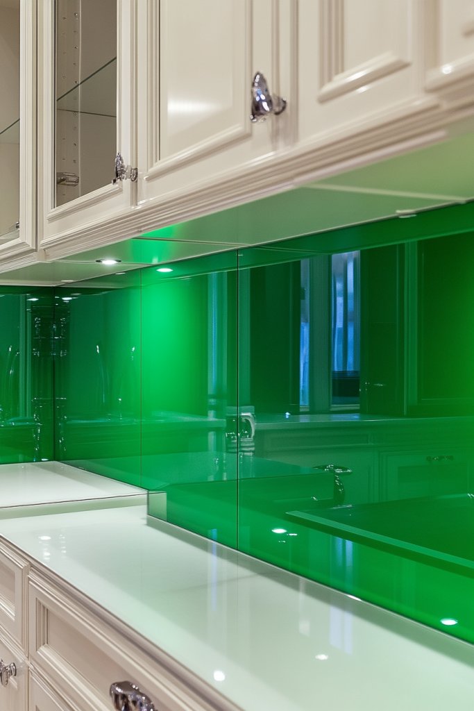 2. Glossy Emerald Green Backsplash as a Statement Wall