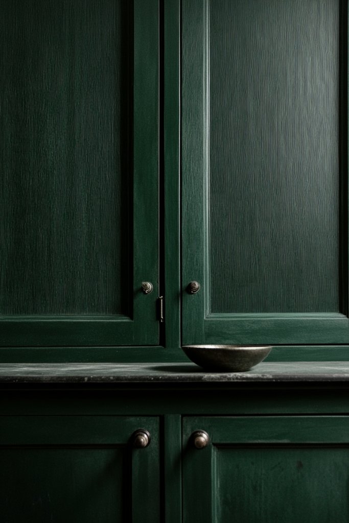 8. Incorporating Textured Dark Green Cabinet Finishes