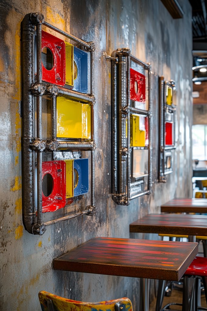 Add personal touches with custom decals, monograms, or metallic foils. Incorporate industrial-inspired decor elements—like exposed piping, vintage bulbs, or metal sculptures—nearby. Use contrasting textures, such as concrete or distressed wood, to deepen the industrial vibe. Keep the display fresh by rotating art or experimenting with different color accents.