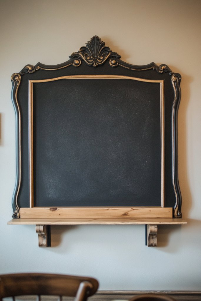 Build or buy a simple wooden or ornate frame, then add a chalkboard surface or cork panel. Decorate the border with paint, washi tape, or embellishments to match your style. Mount the board at eye level using appropriate hardware. Use chalk markers or push pins for easy updates. Keep cleaning supplies nearby for quick refreshes, and consider adding small ledges for holding chalk or notes.