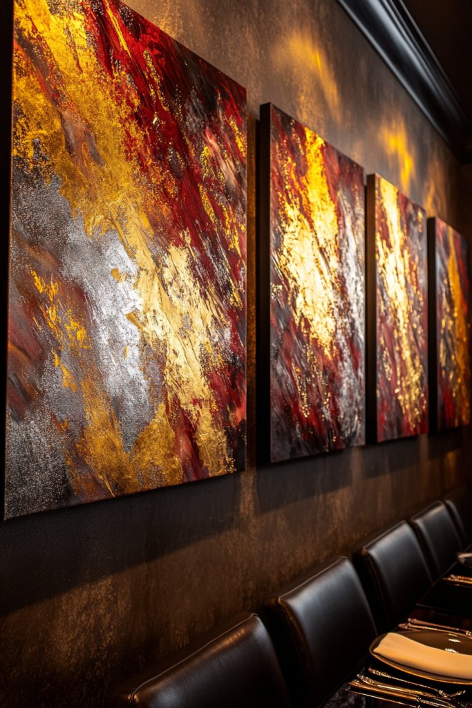 Abstract art with metallic accents proves that bold, contemporary design can be luxurious and inviting. It elevates your entire space and sets a sophisticated tone. Your dining room will feel modern, glamorous, and inspiring—perfect for memorable gatherings. Ready to embrace your luxe side?