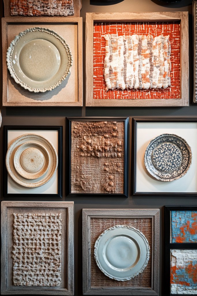5. Gallery Wall with Framed Plate Collections and Textured Art