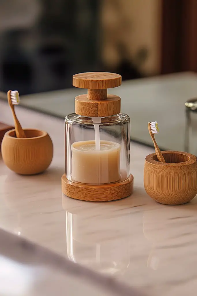 Imagine a sleek ceramic or glass soap dispenser with a matte pump, sitting alongside matching toothbrush holders or cups. The accessories reflect your style—whether modern, vintage, or boho. Coordinated textures and finishes bring harmony and sophistication. These small touches create a curated, intentional space that feels thoughtful and unique.