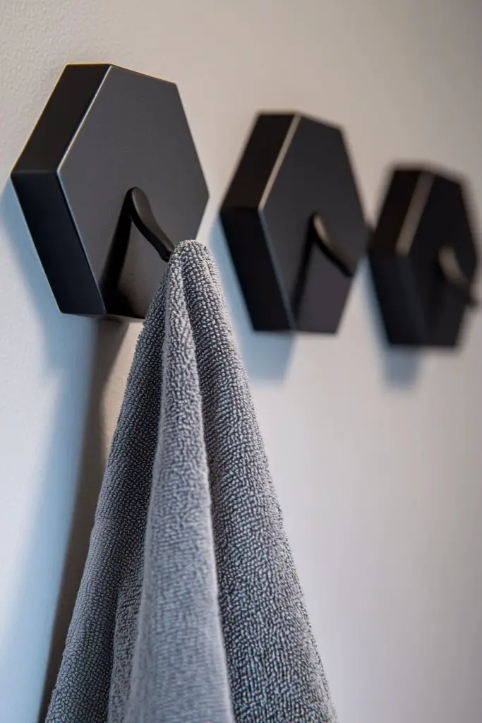 15. Install a DIY Wall-Mounted Towel Rack or Hooks in Unique Shapes