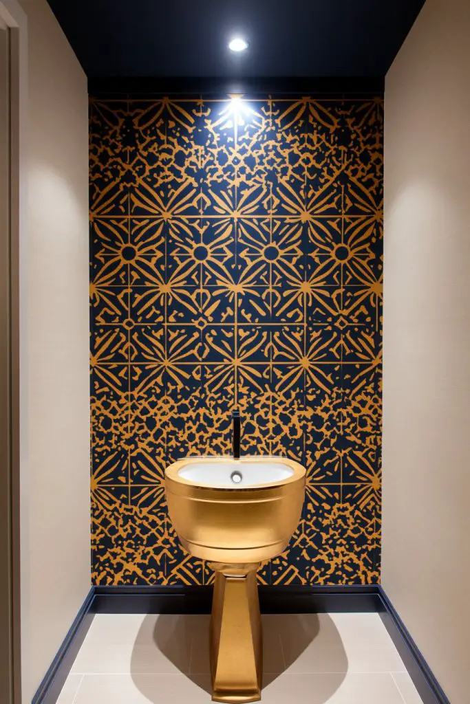Imagine a single wall covered in geometric patterns, textured designs, or vibrant colors—adding instant drama. The wallpaper clings smoothly, creating clean lines and crisp edges. Visualize it paired with minimalist fixtures or vintage accents for a balanced aesthetic. The pattern adds depth and visual interest, making the bathroom feel lively without overwhelming the space.