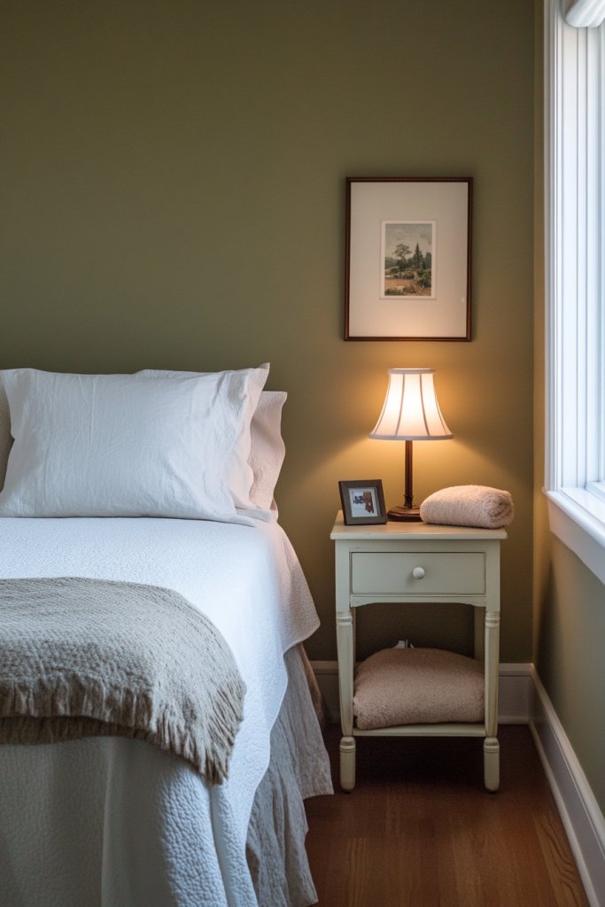 2. Muted Olive Green for Soothing Bedrooms