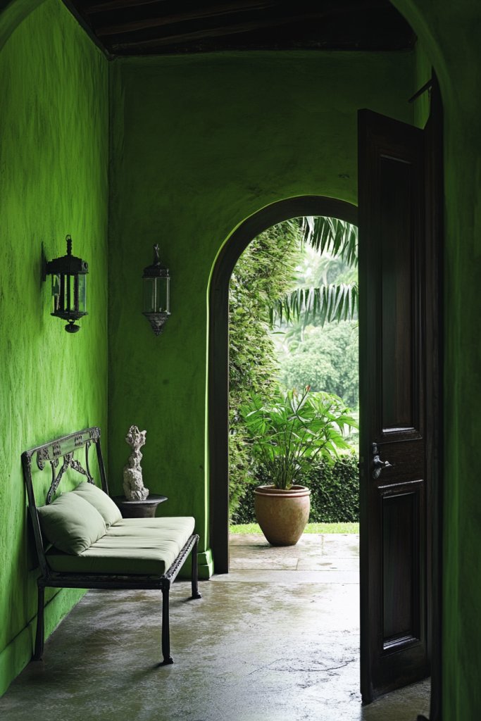 9. Moss Green for Indoor-Outdoor Transition Spaces